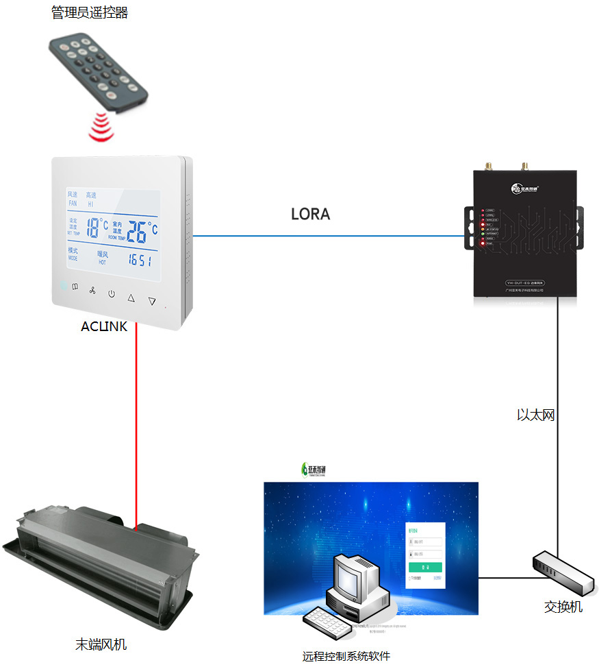 風(fēng)機盤管智能節(jié)能溫控器AClink是廣州派谷電子科技有限公司自主創(chuàng)新研制出的以節(jié)能、遠(yuǎn)程、集控為目的一種新型智能聯(lián)網(wǎng)溫控器(以下簡稱AClink)。AClink配置有液晶顯示屏及觸屏控制,溫度傳感器、強制控制鎖定模塊、及遠(yuǎn)程通訊模塊。AClink還配置有管理員遙控器,AClink在單機運行時,可以通過此遙控器進行各類參數(shù)的設(shè)置。